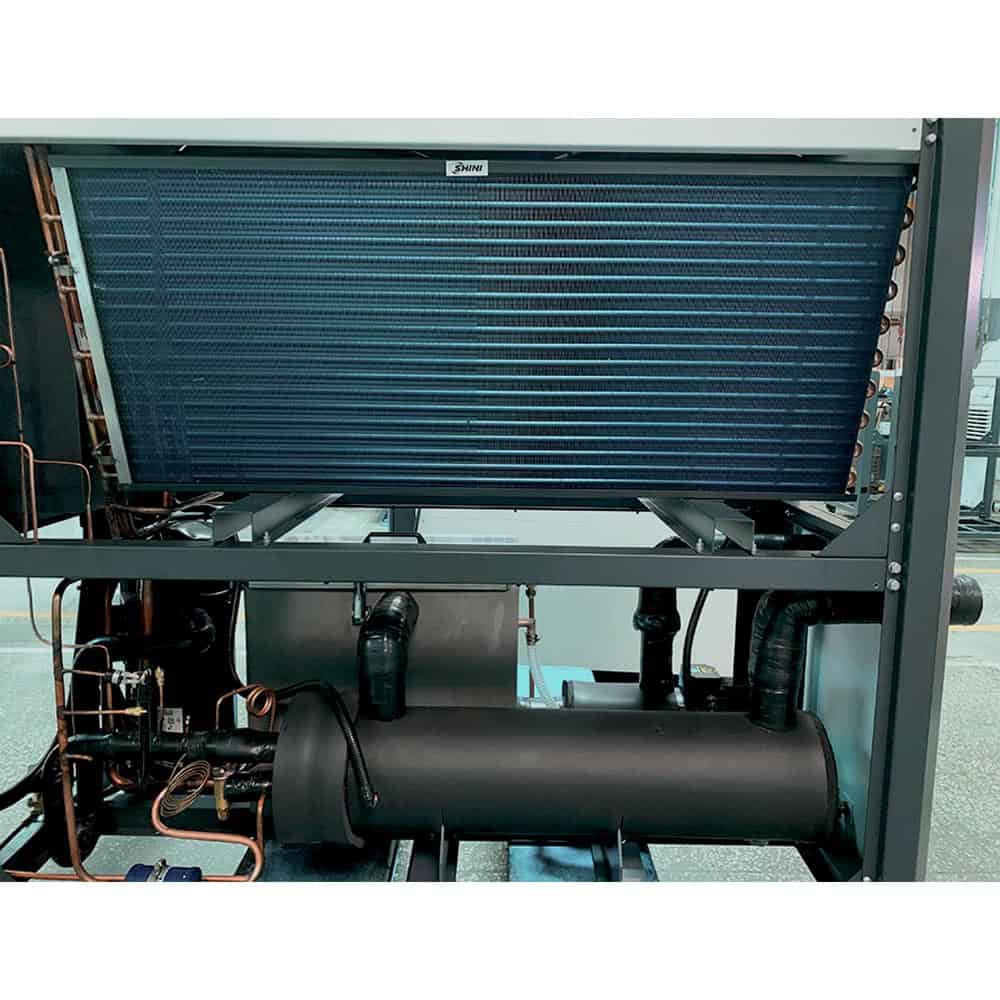- Чиллер SIC-A с воздушным охлаждением конденсаторного блока оборудован высокоэффективным пластинчатым испарителем.