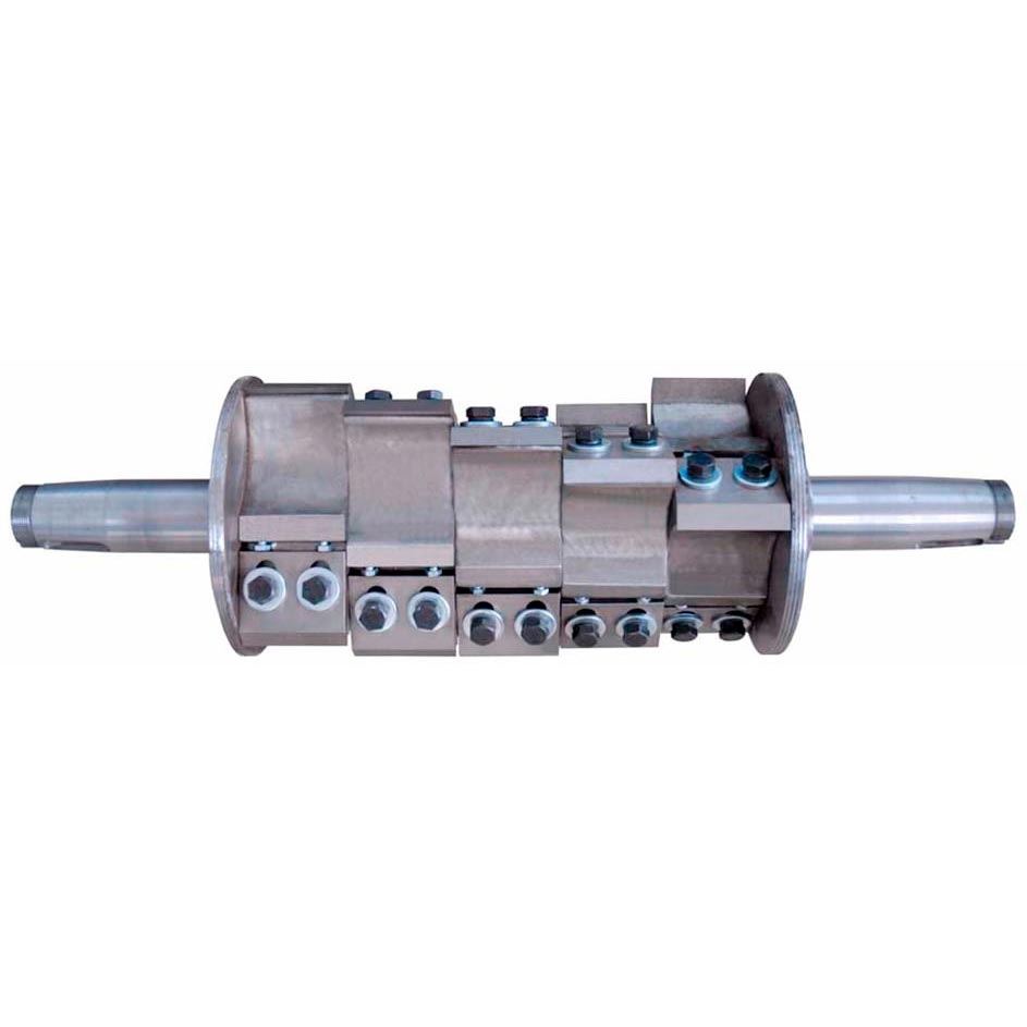 - Оптимальный угол наклона ножей обеспечивает низкое сопротивление и предотвращает блокировку ротора, что увеличивает эффективность дробления.