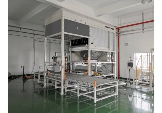 - Устройство сбора пустых паллет - перемещает пустые паллеты из зоны растаривания к устройству сбора паллет. Штабелированные паллеты забираются вилочным погрузчиком.