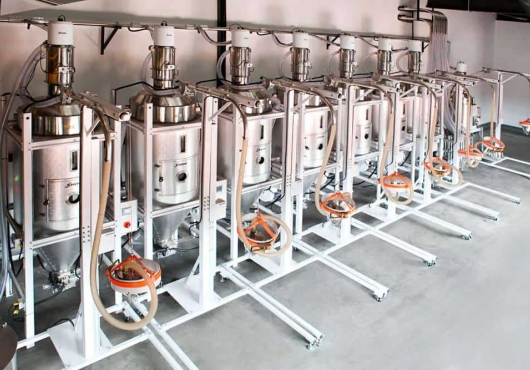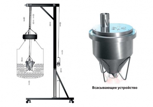 - Пневматический вибродвигатель для лучшего всасывания плохо сыпучих материалов. Индекс "V" в наименовании модели.