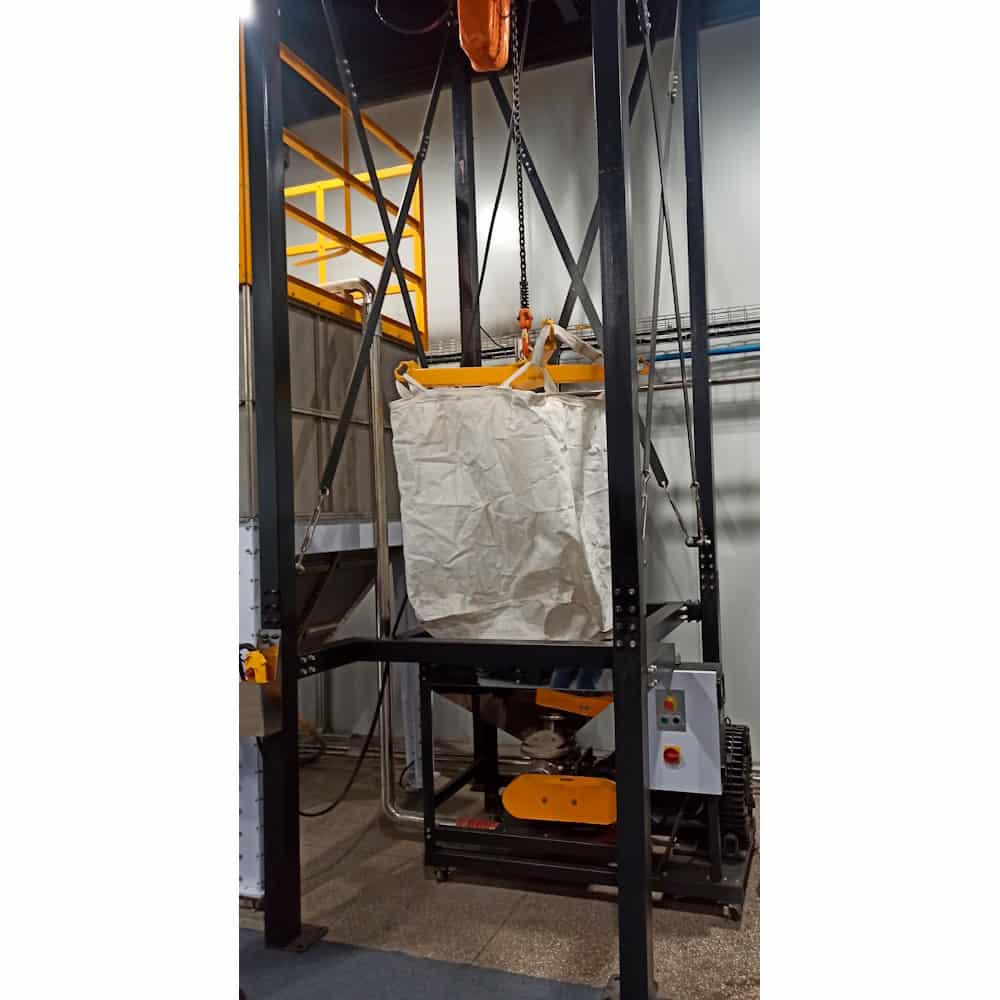 Станция растаривания Shini серии SS-TKD используется для выгрузки сырья из биг бегов. Оснащена всасывающей коробкой, имеющей от одного до нескольких выходов, для транспортировки материалов в силос или на производственный участок. Станция растаривания SS-TKD состоит из рамы, разгрузочного бункера, всасывающей коробки и электрического тельфера. Биг бег с помощью тельфера подвешивается на раме, оператор надрезает его и высыпает содержимое в бункер.