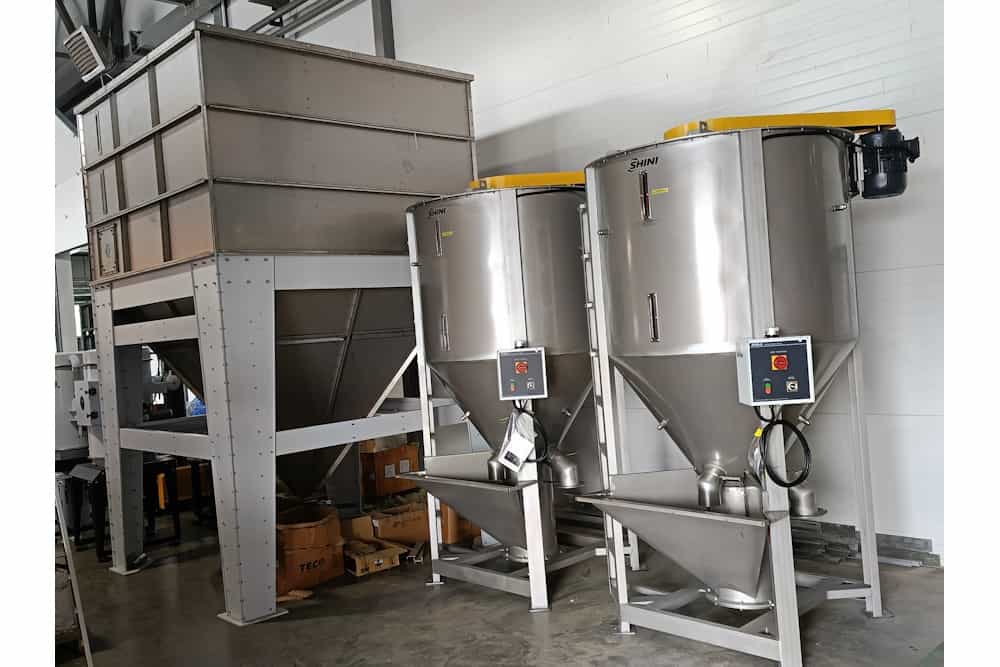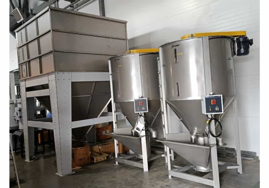 Вертикальный шнековый смеситель SVM-2000U используется в основном для смешивания гранулированных и измельченных пластмасс. Смеситель не может использоваться для смешения порошкообразных материалов, пищевых продуктов, химических, легковоспламеняющихся, взрывчатых и летучих веществ. При смешении различных полимерных материалов следует обращать внимание на их плотность, для обеспечения равномерного смешения.