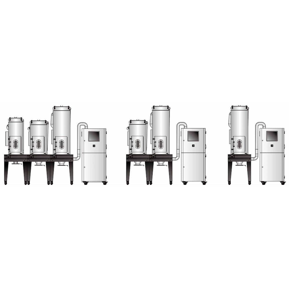 Отличительной особенностью системы осушения SD-H-SM является возможность модульной установки до 8-ми сушильных бункеров для гранул полимеров. Напольные рамы, на которые устанавливаются бункеры обеспечивают удобство перемещения и возможность расширения системы в любой момент.