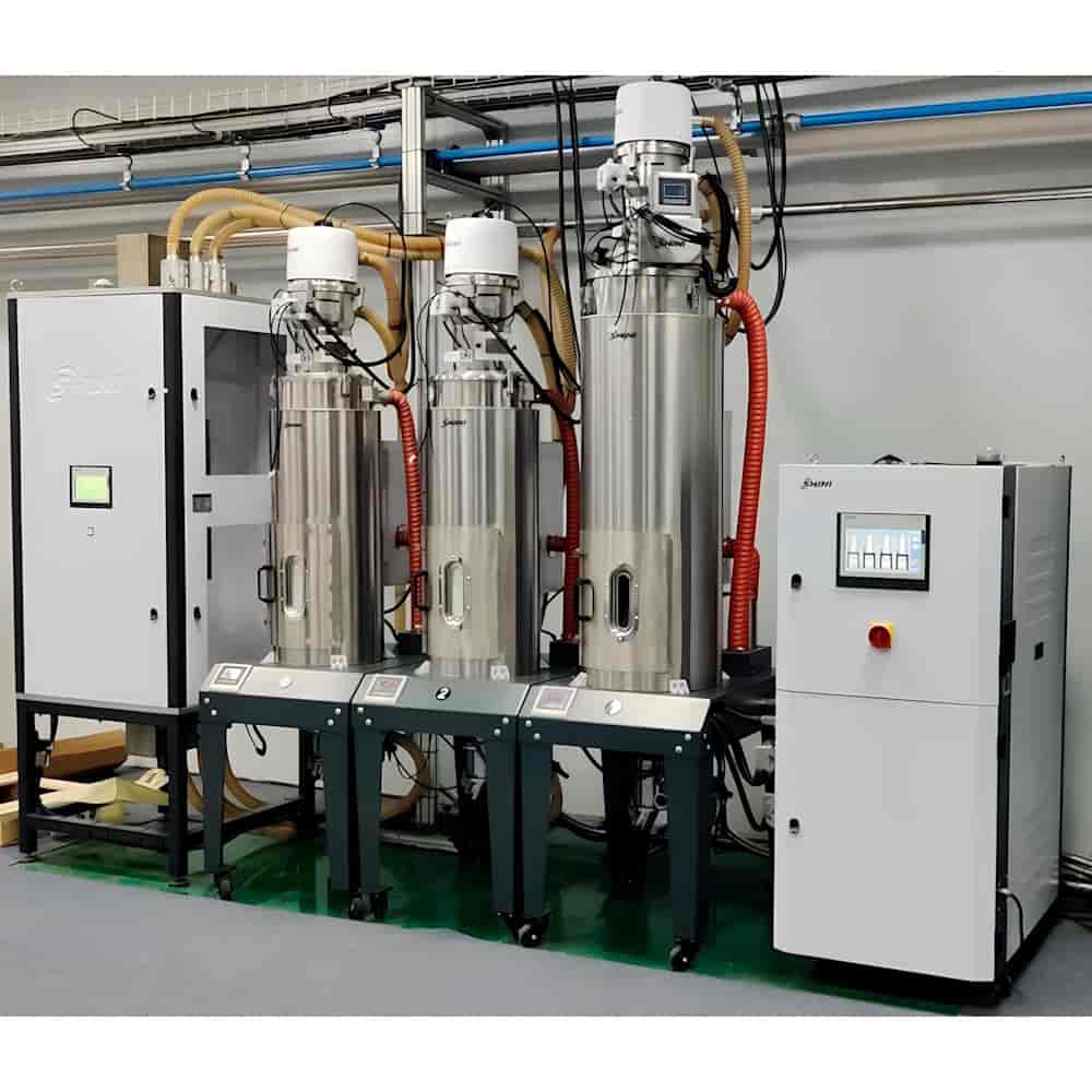 Модульная система осушения Shini серии SD-H-SM выполнена в виде моноблока «два в одном»: сушильный бункер MHD-U (до 8 штук) + влагопоглотитель SD-H. Осушители SD-H-SM применяются для сушки гигроксопичных марок пластика, таких как ПА, ПК, ПБТ, ПЭТ и т.д. Все модели оснащены влагопоглотителями SD-H с сотовыми барабанами, где идет процесс осушения в замкнутом контуре. В идеальных условиях осушитель может обеспечить осушение воздухом с точкой росы ниже - 40 оС.