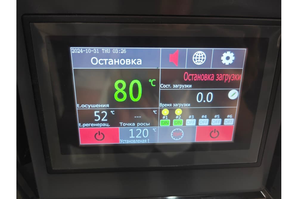 - Необходимое значение точки росы осушающего воздуха для полного сушения материала ≤ 20 °C.