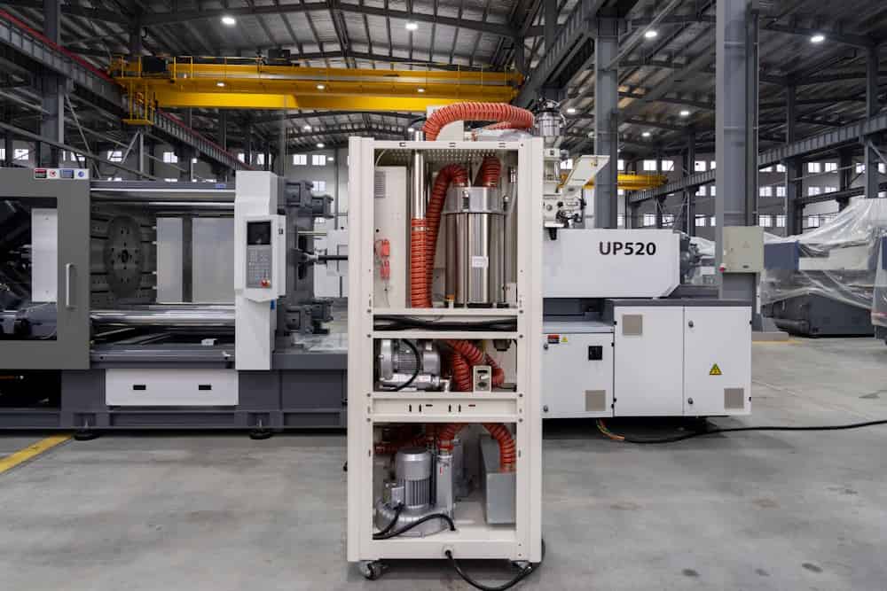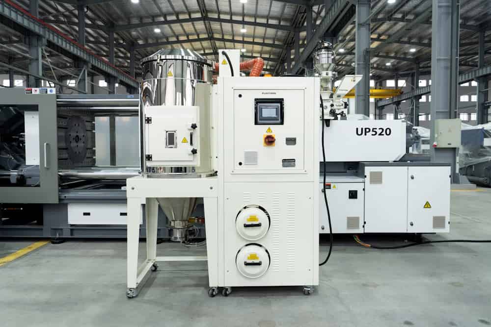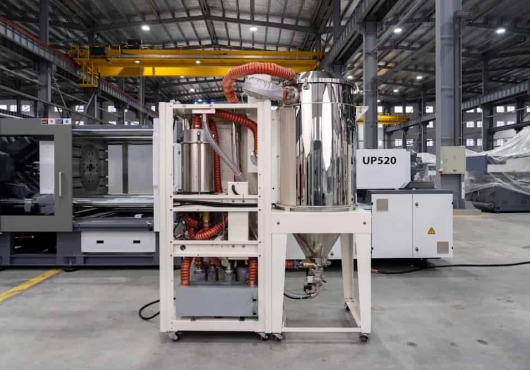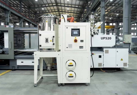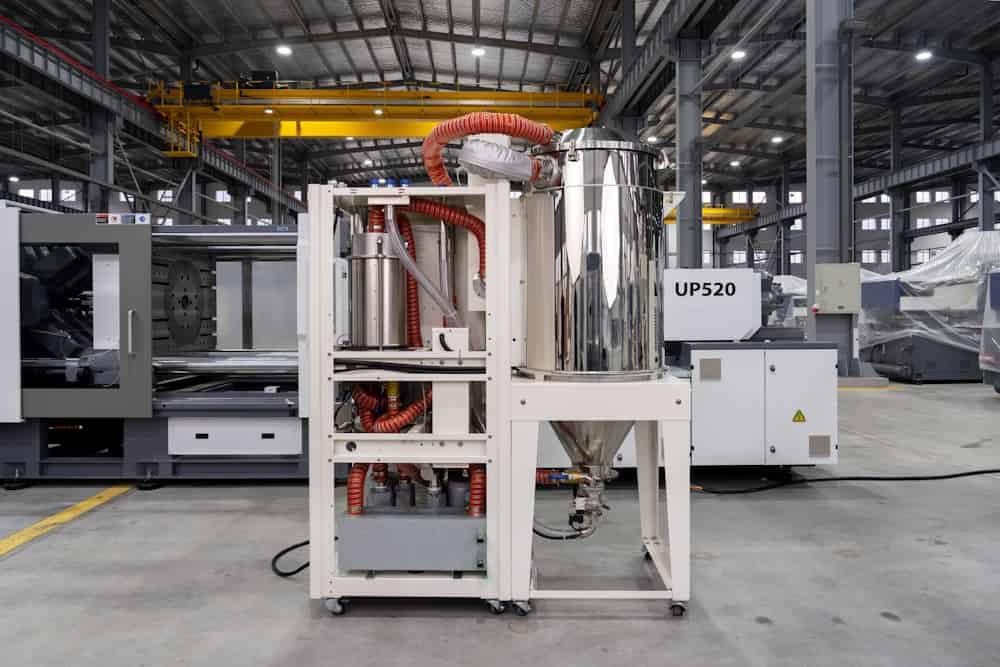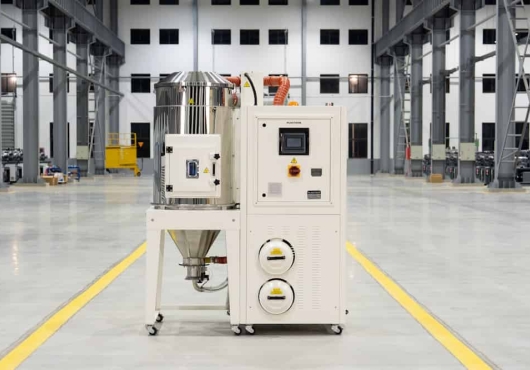 Осушитель полимерного материала PCD-500HC "Три в одном" – это компактный комплекс оборудования, включающий в себя роторный влагопоглотитель, сушильный бункер и вакуумные автозагрузчики для загрузки материала в сушильный бункер и последующую загрузку в приемный бункер ТПА или экструдера. Процессы загрузки и сушки материалов осуществляются полностью в автоматическом режиме и контролируются единой системой управления. В стандартном исполнении осушителя присутствует функция рециркуляции горячего воздуха, что позволяет снизить потребление электроэнергии.