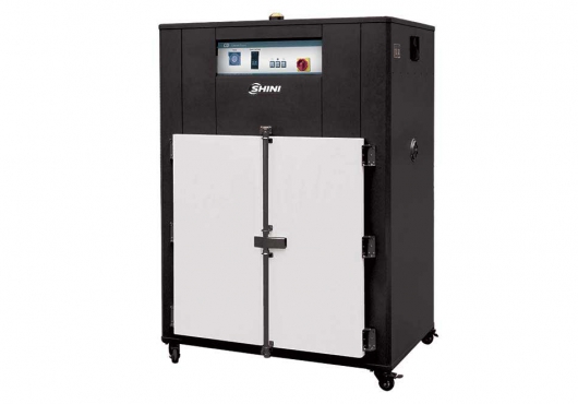 Сушильный шкаф CD-9 предназначен для одновременной сушки различных полимерных гранулированных материалов на лотках с заданной температурой. Температура в сушильном шкафу CD-9 поддерживается термоконтроллером, лотки выполнены из нержавеющей стали, которые перемещаются по металлическим полозьям. Нагретый до заданной температуры воздух равномерно подаётся к лоткам с материалом по воздуховодам. Равномерно распределенный поток воздуха позволяет добиться эффективной сушки материала.