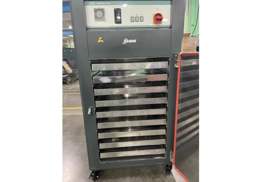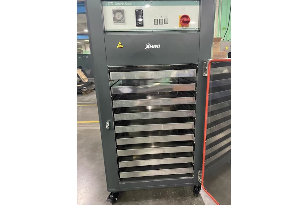 Сушильный шкаф CD-9 предназначен для одновременной сушки различных полимерных гранулированных материалов на лотках с заданной температурой. Температура в сушильном шкафу CD-9 поддерживается термоконтроллером, лотки выполнены из нержавеющей стали, которые перемещаются по металлическим полозьям. Нагретый до заданной температуры воздух равномерно подаётся к лоткам с материалом по воздуховодам. Равномерно распределенный поток воздуха позволяет добиться эффективной сушки материала.