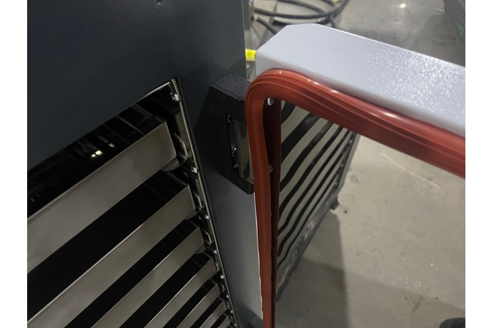 - Дверь с термостойкими уплотнителями предотвращает выход воздуха через дверной проем, что позволяет добиться сушки материала с высокой эффективности при низком потреблении электроэнергии.