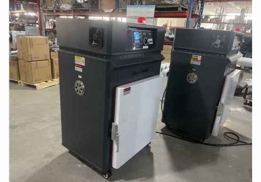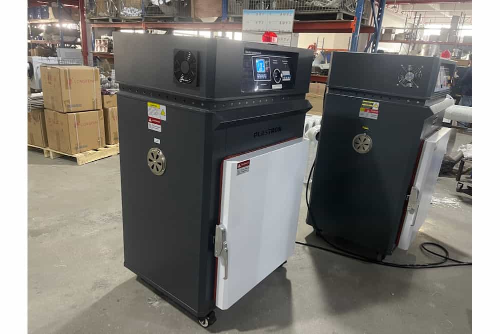 Сушильный шкаф PPCD-20-HT предназначен для сушки полимерных гранулированных материалов на лотках с заданной температурой. Температура в сушильном шкафу поддерживается термоконтроллером, лотки выполнены из нержавеющей стали, двигаются по металлическим полозьям. Подогретый до заданной температуры воздух поступает равномерно к лоткам с материалом по многочисленным воздуховодам. Для того чтобы сушка полимеров была эффективной, конструкция шкафа спроектирована таким образом, чтобы воздух равномерно циркулировал по всему пространству, обеспечивая одинаковый прогрев всего осушаемого материала.