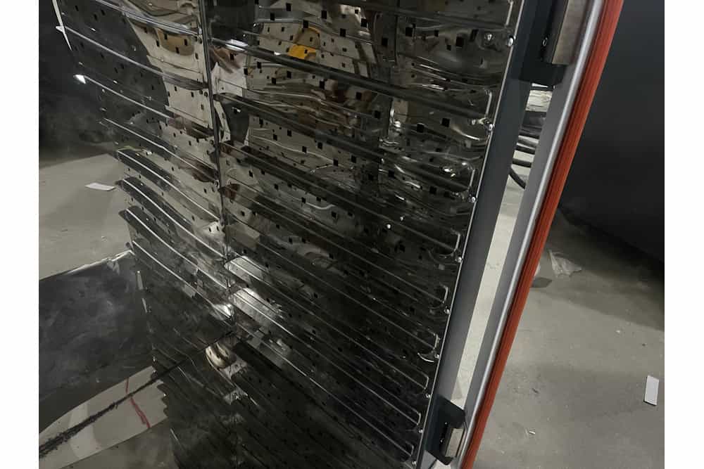 - Лотки выполнены из нержавеющей стали, легко двигаются по металлическим направляющим полозьям, не загрязняют материал. Оптимальная конструкция для удобного использования и обслуживания.