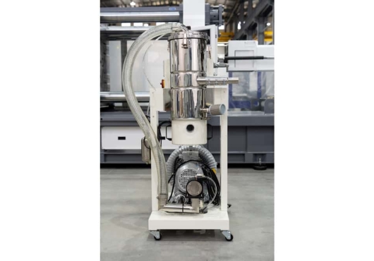 Вакуумный загрузчик PSHY-CP12-M10D опционально комплектуется циклонным сепаратором пыли. Воздушный поток с пылью подается на высокой скорости в циклонный фильтр, пыль скапливается на внутренней стенке циклонного фильтра, затем под действием силы тяжести опускается вниз и выходит через выпускное отверстие. Вращающийся воздушный поток скапливается в центре бункера после чего превращается во вторичный вихревой поток и выходит наружу. Оборудование эффективно фильтрует воздух от пыли и предотвращает загрязнение воздуха.