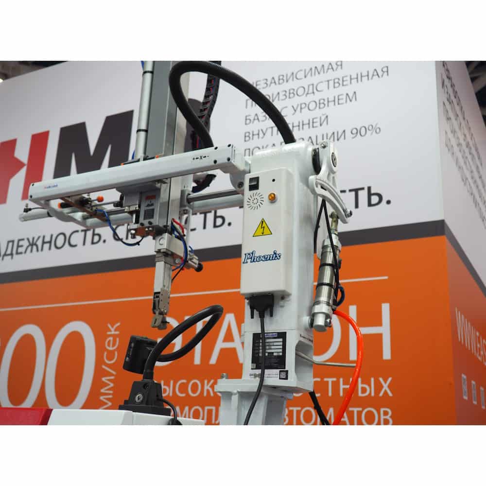 Серия «Phoenix» бренда Alfarobot - роботы, предназначенные для отделения литника или снятия изделий. Поворотный манипулятор оснащается четырьмя осями перемещения и мощными пневматическими приводами. Простая конструкция обеспечивает высокую скорость, надежность, низкий уровень вибрации и шума, низкую стоимость. Механизм автоматической смазки не требует значительных затрат сил и времени на обслуживание.