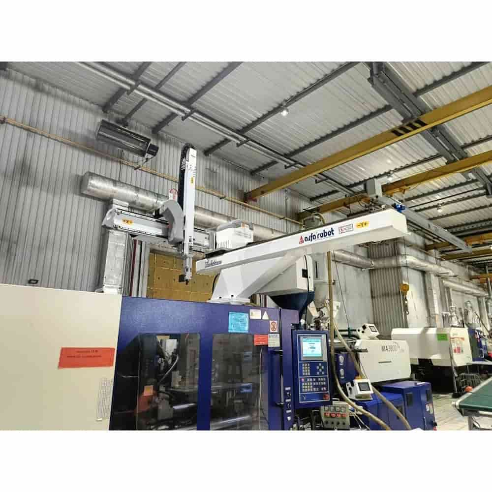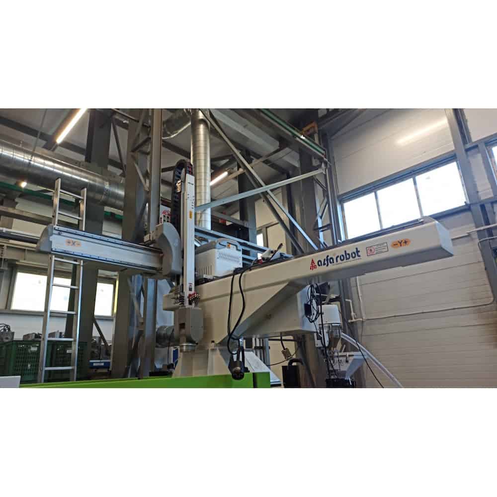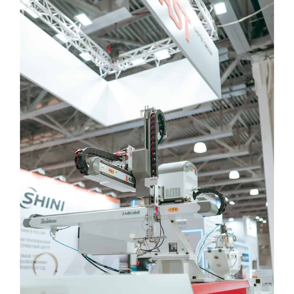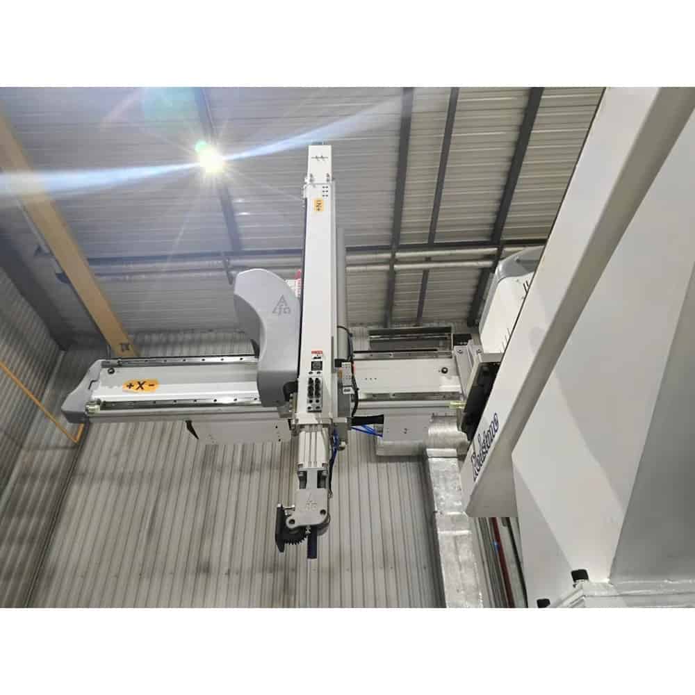 Робот манипулятор для ТПА Alfarobot серии «Redstone» - с максимальной точностью и скоростью движений по всем осям предназначен для горизонтальных ТПА начального уровня. Движения по каждой оси реализованы посредством серводвигателей переменного тока. Движение манипулятора может программироваться по сложным алгоритмам. Роботы манипуляторы для ТПА серии «Redstone» предназначены для извлечения изделий с коротким циклом литья, а также в составе полностью автоматизированных комплексов.