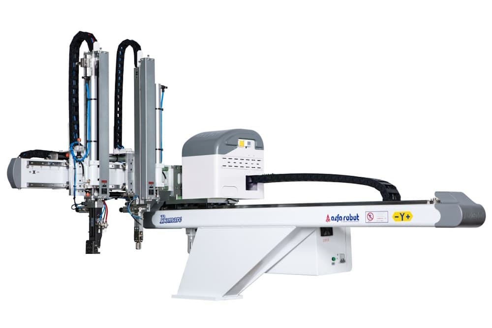 Робот Bomarc Economical BE850 IDY/WDY позволяет автоматизировать извлечение изделий или удаление литников с высокой скоростью и точностью, по доступной цене. Робот Bomarc Economical BE850 IDY/WDY может извлекать готовое изделие и со стороны подвижной плиты термопластавтомата и со стороны неподвижной плиты.