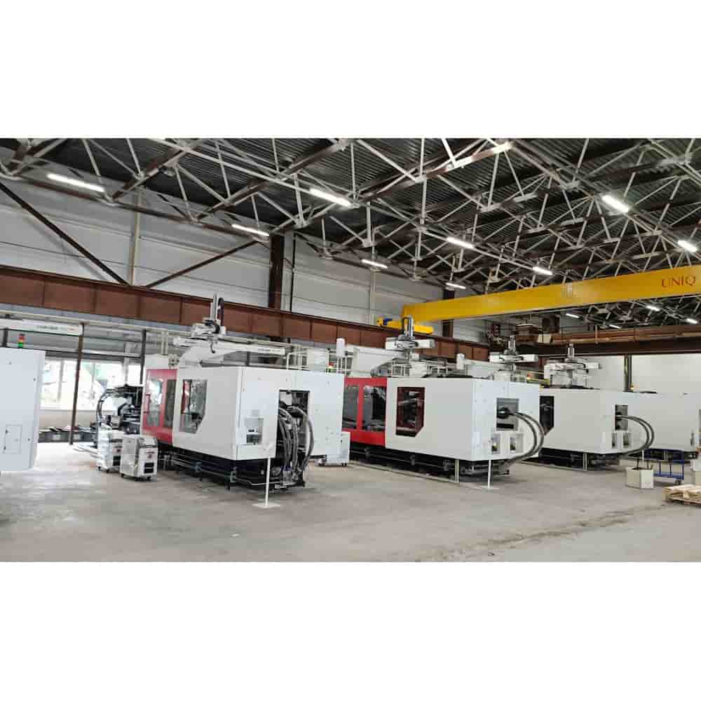 - Стабильный узел впрыска: два гидроцилиндра для сбалансированной нагрузки на шнек и двойные линейные направляющие обеспечивают точный и быстрый впрыск полимера;