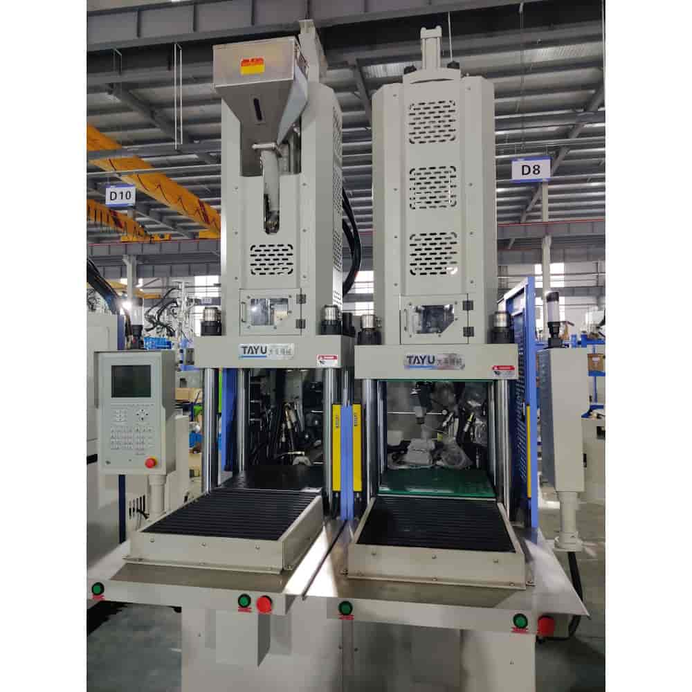Вертикальные термопластавтоматы TAYU серии "-C", используются для производства изделий, состоящих из двух и более полимеров. Двухцветное (многоцветное) одновременное литье значительно сокращает процесс изготовления, экономя 2/3 времени производственного цикла, уменьшает проблемы качества, вызванные усадкой во время охлаждения. Мультикомпонентные вертикальные ТПА серии "-C" представляют из себя блочную конструкцию, где в зависимости от конкретного изделия подбираются узлы впрыска и смыкания. В первой таблице приведена информация по узлу смыкания, во второй по узлу впрыска, каждый узел смыкания может комплектоваться разными узлами впрыска на выбор.
