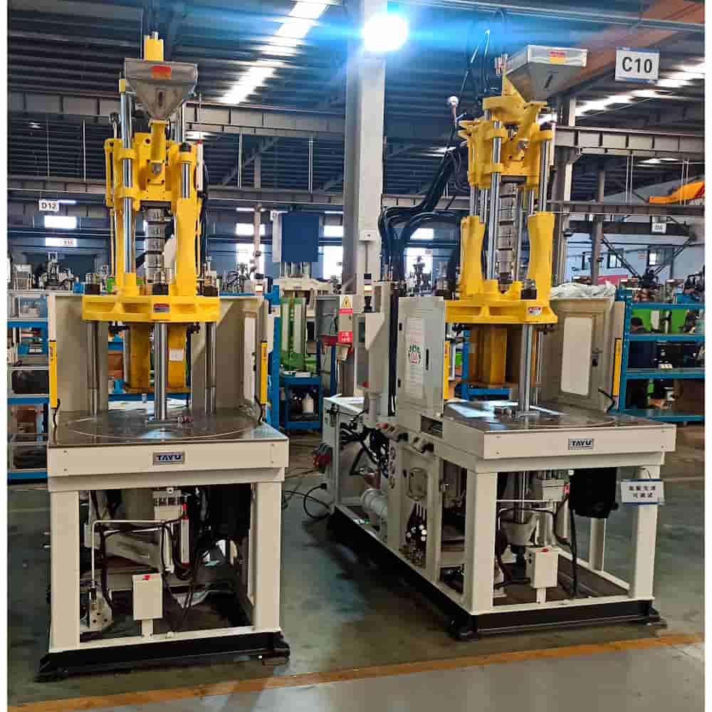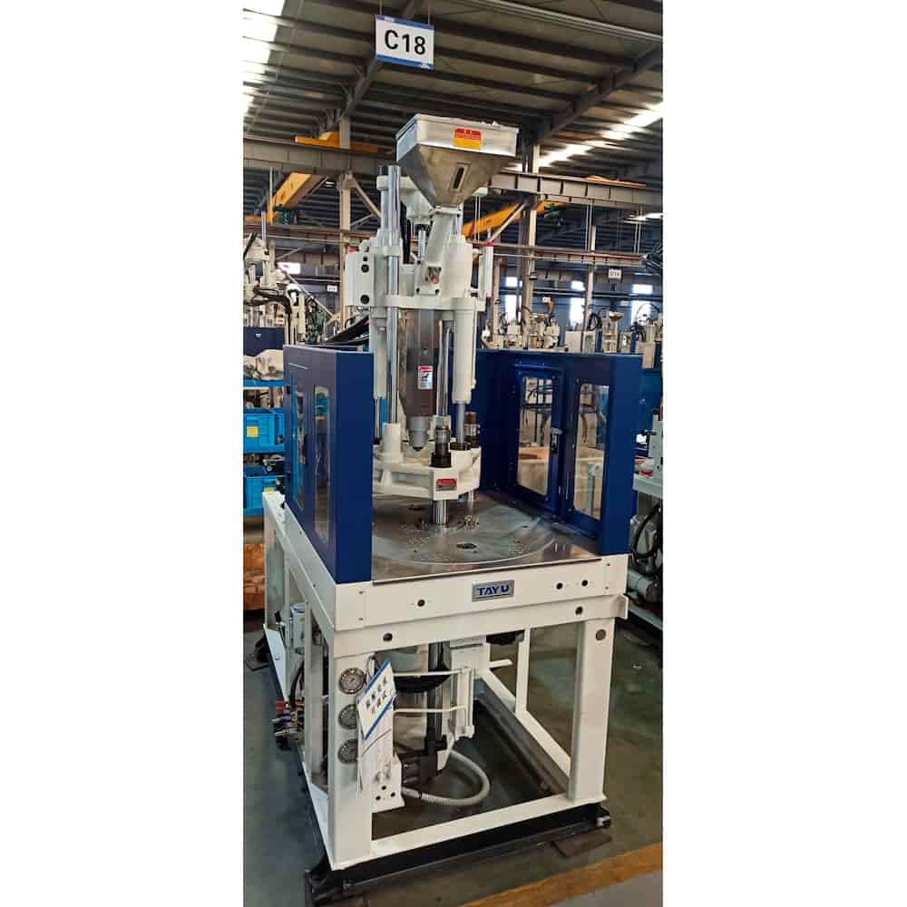 Вертикальный ТПА TAYU серии TY-R с поворотным столом предусматривает работу с одной верхней полуформой и несколькими нижними полуформами. Это позволяет одновременно выполнять литье и извлечение готового изделия или вставку закладных элементов, что значительно повышает производительность ТПА.