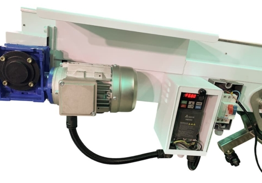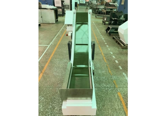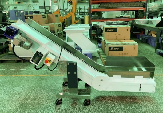 Наклонный ленточный транспортер для ТПА CB-2 отличается надежностью в работе и простотой в управлении. Расположенный рядом с термопластавтоматом, он годится для транспортировки готового продукта или литников на большое расстояние и высоту.