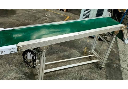 - Изделие изготовлено из алюминиевого профиля (A6063), конструкция обладает высокой степенью жесткости. Высота обеих сторон транспортера легко регулируется при помощи рукоятки. Комплект поставки изделия включает 4 колеса, для перемещения конвейера.