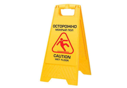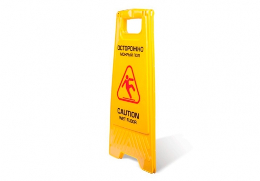 Раскладные напольные таблички с информацией для посетителей: "проход закрыт", "соблюдайте тишину", "осторожно скользкий пол" и так далее.