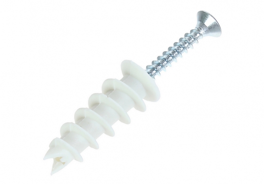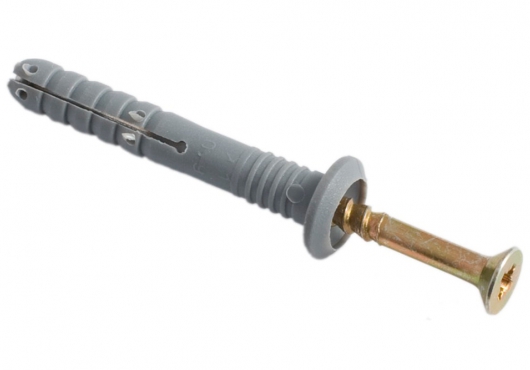 Дюбель гвоздь - крепеж, сочетающий в себе два компонента: металлический гвоздь и пластмассовый дюбель. Предназначен для забивания или вкручивания гвоздя, в зависимости от его вида, в прочные полнотелые материалы: камень, кирпич, бетон, также применяется для гипсокартона, ДСП. Монтаж может осуществляться с использованием монтажного пистолета.