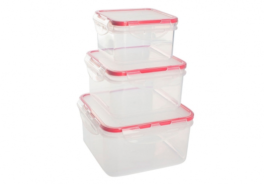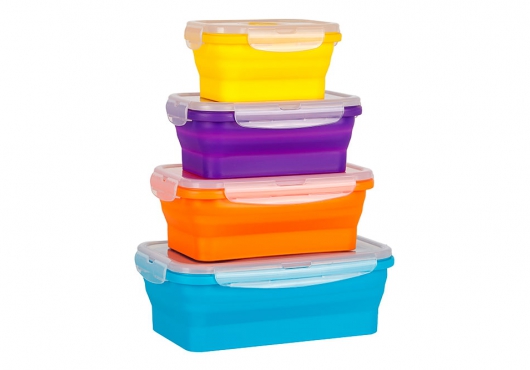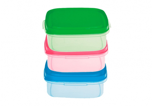 Пластмассовые контейнеры для транспортировки и хранения еды разнообразных форм, цветов и размеров.