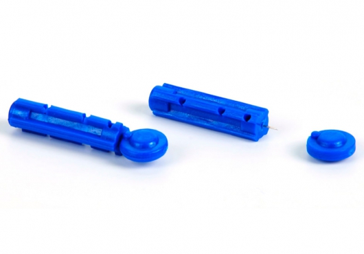 Ланцет - медицинское устройство для прокола кожи и забора крови на анализ. Представляет из себя пластиковый корпус, внутри которого размещена тонкая игла. Использование практически не вызывает болевых ощущений и повреждения тканей.