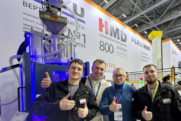 Помимо оборудования, посетители экспозиции могли познакомиться с планом размещения централизованной системой подачи и загрузки сырья на предприятии. Система предусматривает растаривание биг-бэгов и автоматизированную систему растаривания мешков с последующей транспортировкой сырья в силосы. Макет включает литьевой цех с термопластавтоматами HMD и вспомогательное оборудование SHINI.