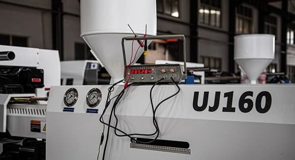 Вычисления скорости пластикации производится с помощью миллисекундометра. Датчик измерительного прибора срабатывает в момент, когда шнек достигает определенной точки в своем движении.