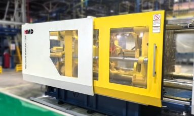 По запросу клиента, ТПА HMD 600M8-SII был модифицирован: оснащен узлом впрыска уменьшенного размера с возможностью управления горячеканальной системой с пульта ТПА. Дополнительно была реализована 6-канальная каскадная система впрыска с системой удаленного мониторинга. Термопластавтомат также был оборудован 10-канальными ротаметрами, установленными на подвижной и неподвижной плитах. Данное решение обеспечивает визуальный контроль потока в каждом канале и позволяет производить точную регулировку непосредственно в пресс-форме. Извлечение готовых деталей из станка осуществляется 3-х осевым сервоприводным роботом с централизованной системой смазки и последующей передачей на конвейер, оснащенный защитным ограждением. Согласно индивидуальному запросу клиента, оборудование было окрашено в фирменный цвет.