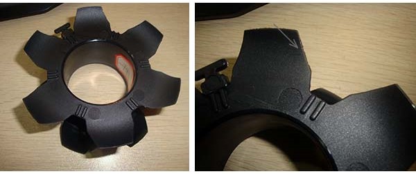 3. У изделий сложных форм может появляться облой на стыках формообразующих деталей из-за недостаточной притирки соприкасаемых металлических частей пресс-формы.