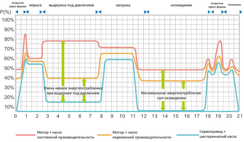 ТПА с сервоприводом – экономичное и высокопроизводительное оборудование. Сервопривод дает возможность эффективно беречь электроэнергию - экономия может составлять 45 - 75%, обуславливая быструю окупаемость затрат. Высокий уровень продаж термопластавтоматов с сервоприводом объясняется их неоспоримыми достоинствами.
